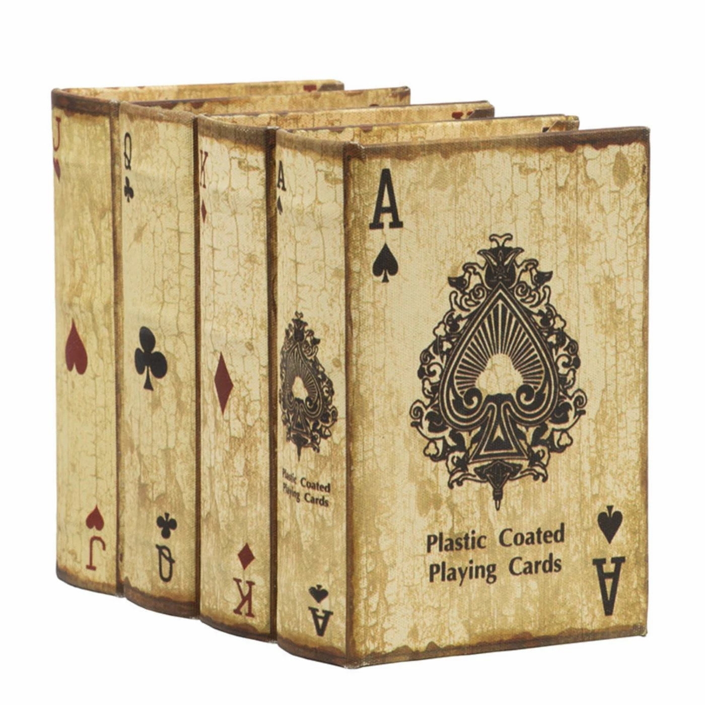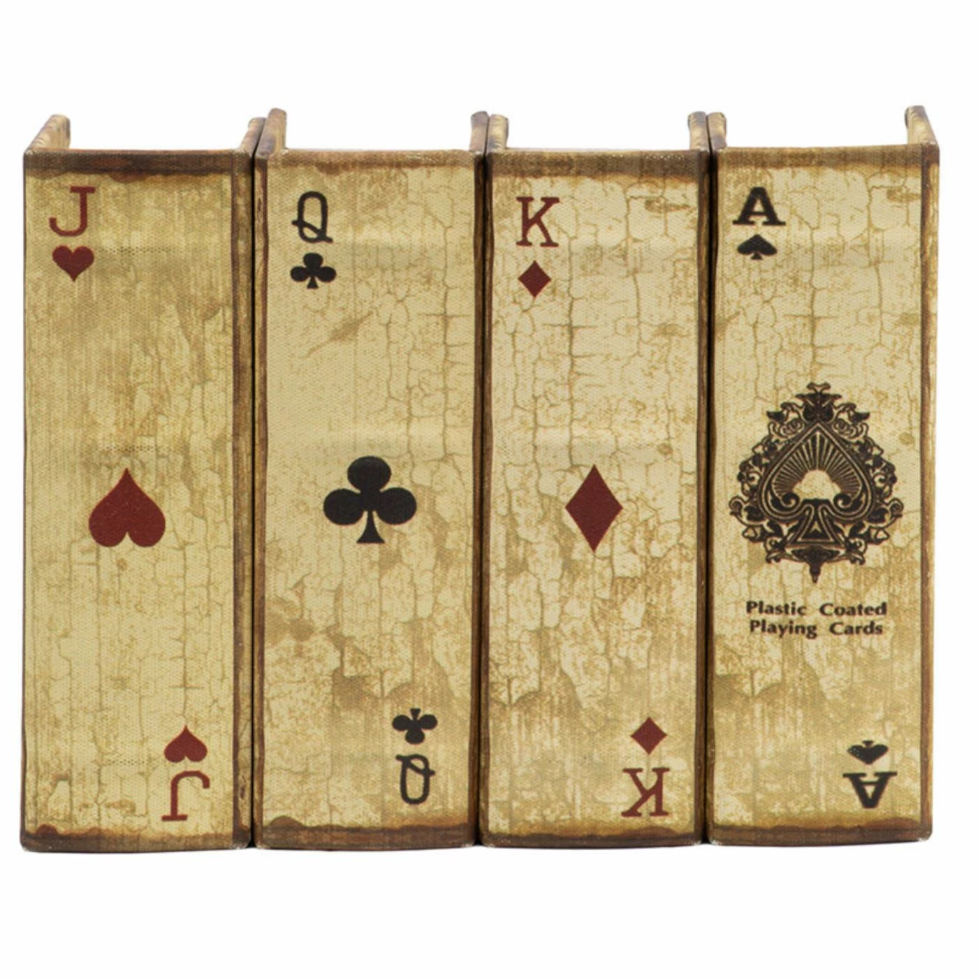 Heavily distressed for a rustic charm, the A & B Home Book Boxes – Set of 4 are a creative way to organize your space. Featuring a card-inspired design, these book-shaped boxes lend usable storage to a shelf or table with plenty of decorative appeal.