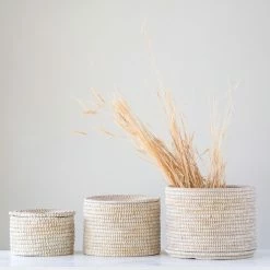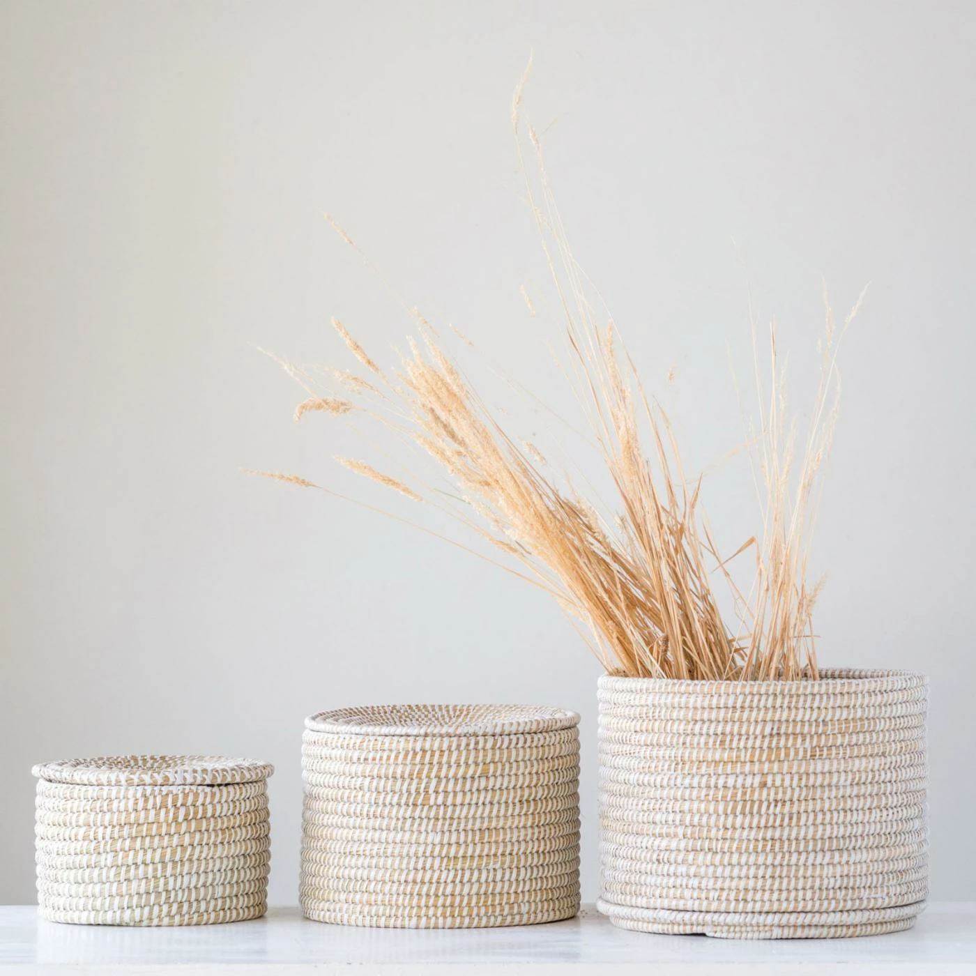 The 3R Studios Whitewashed Woven Seagrass Basket with Lid – Set of 3 combines storage and style. These three baskets come in varied sizes. Each is constructed of natural seagrass in a whitewashed finish. Matching lids make these baskets perfect for storing the miscellaneous items that clutter up your home. You can also use them to stage potted houseplants. With their classic design and neutral finish, you can use these baskets in practically any room in the house.