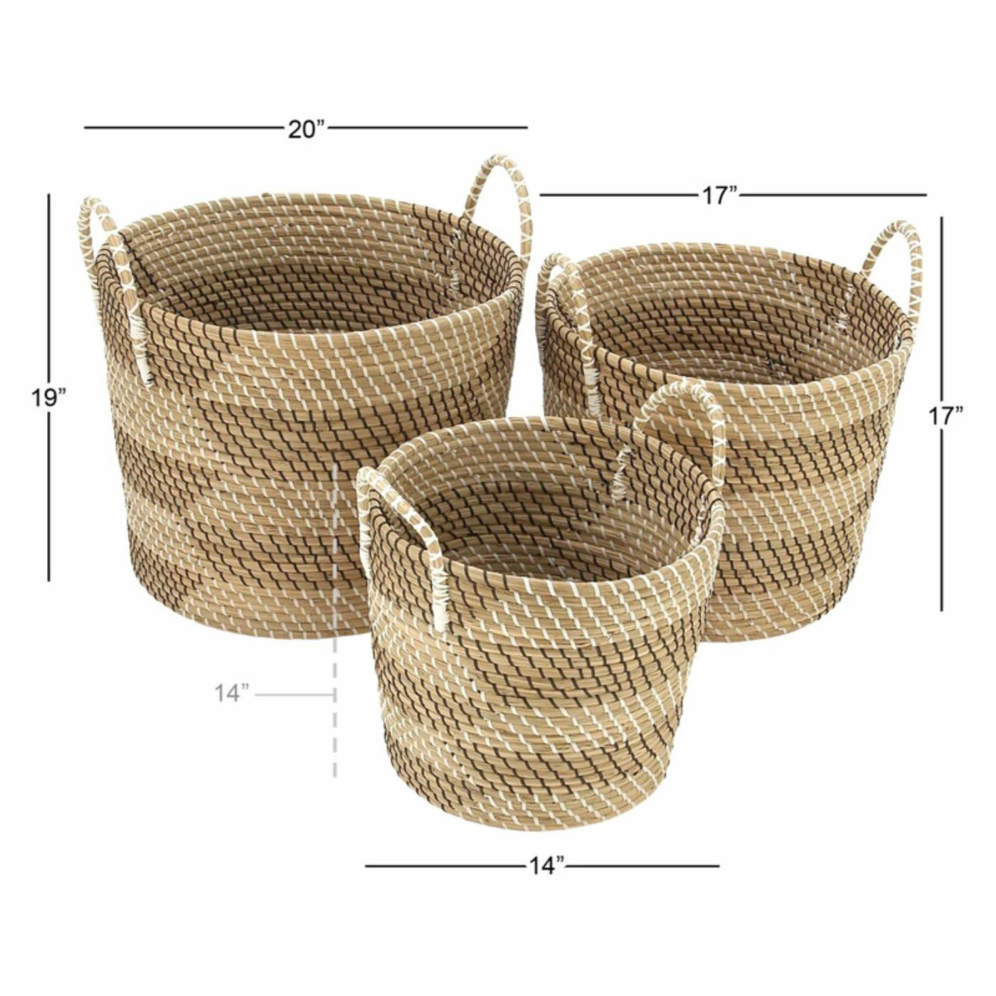 The DecMode Adorable Seagrass Baskets – Set of 3 give you a whimsical way to store your essentials with a gorgeous lightweight beige, white and brown finish. These baskets come in three different sizes to suit your storage needs, and the natural seagrass material brings them an organic look and feel to elevate the style of your home.