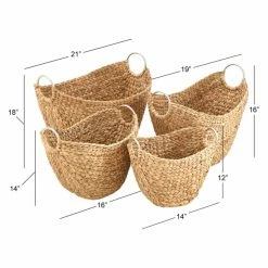 The DecMode Oval Wicker Basket – Set of 4 provides a charming way to organize linens, baking supplies, toys, and more. Metal ring handles make toting easy. Water hyacinth fibers are used to craft the bodies of the basket, tightly woven into a channel design.