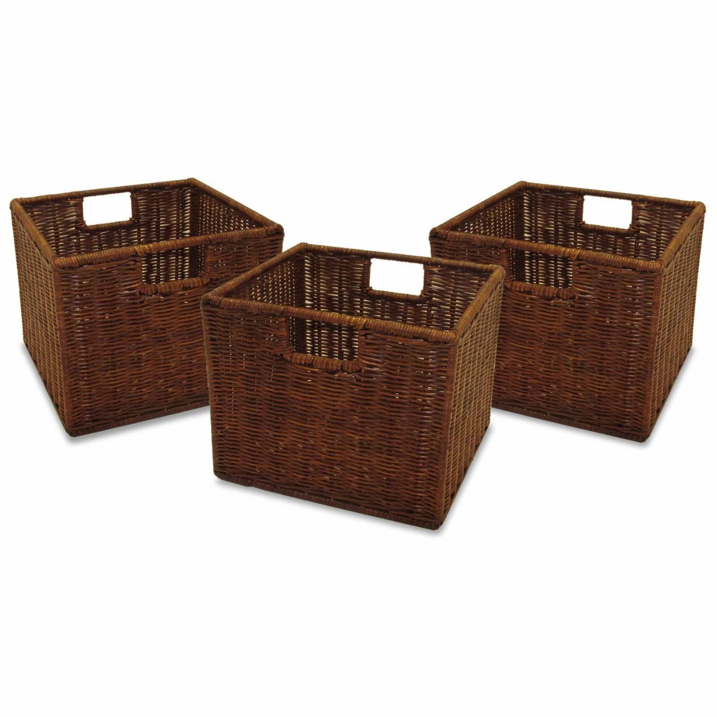 Use this Winsome Small Wired Rattan Basket – Set of 3 to get and keep organized anywhere in your home. Store them on a bookcase or in a closet, or use them alone. Sturdy and attractive, these baskets feature an antique walnut finish, and handles give you a firm grip to take these baskets wherever you go.