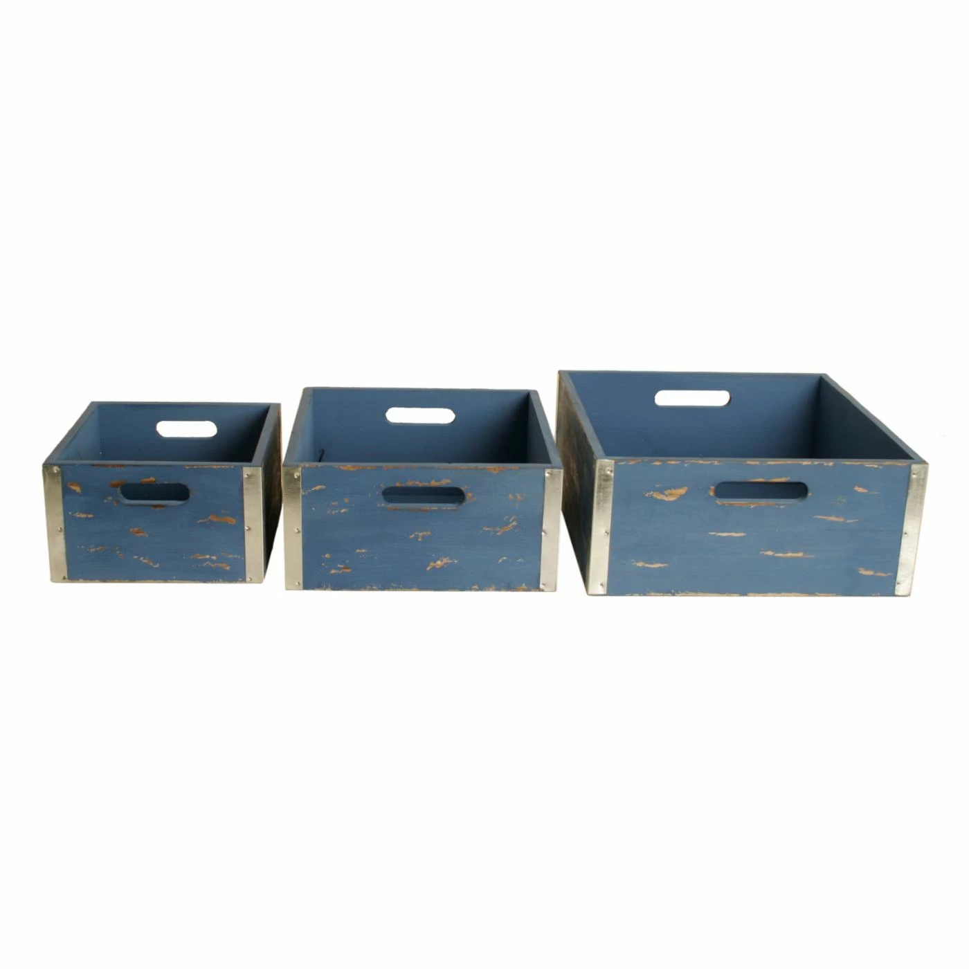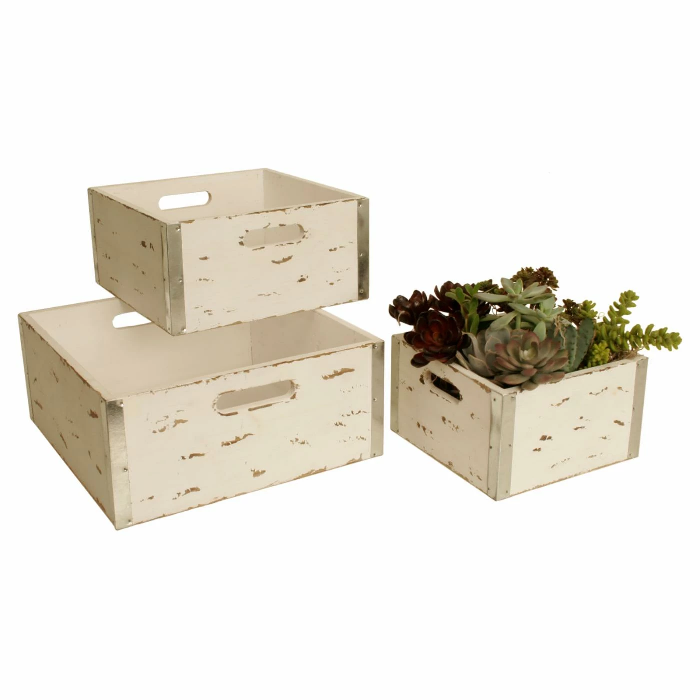 Load up the Wald Import Square Distressed Crates – Set of 3 with goodies and use them as gift baskets, or stack and decorate them with seasonal dΓ©cor items for a rustic display. The set includes a small, medium, and large wood crate with polished metal corners. Choose from available color options.