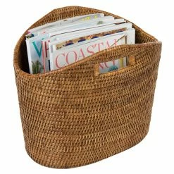 Keep the KOUBOO La Jolla Oval Rattan Magazine Rack beside your sofa or favorite reading chair to tuck away periodicals and books in plain sight. This tightly woven oval basket has a generous space for magazines and cut-out handles so it’s easy to move about your space.