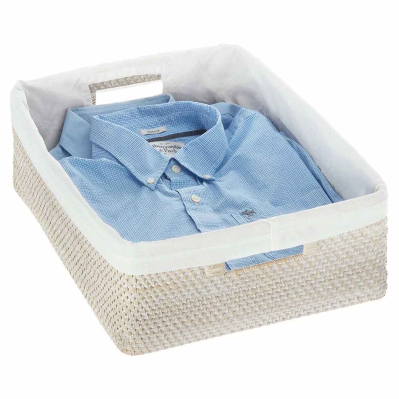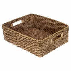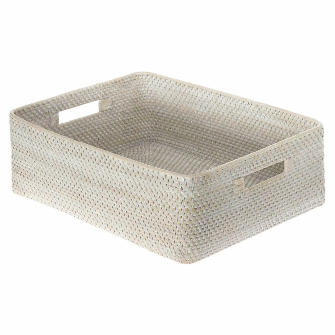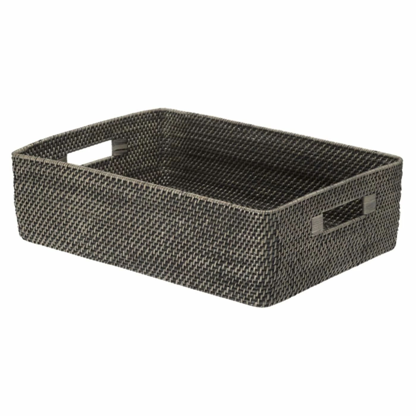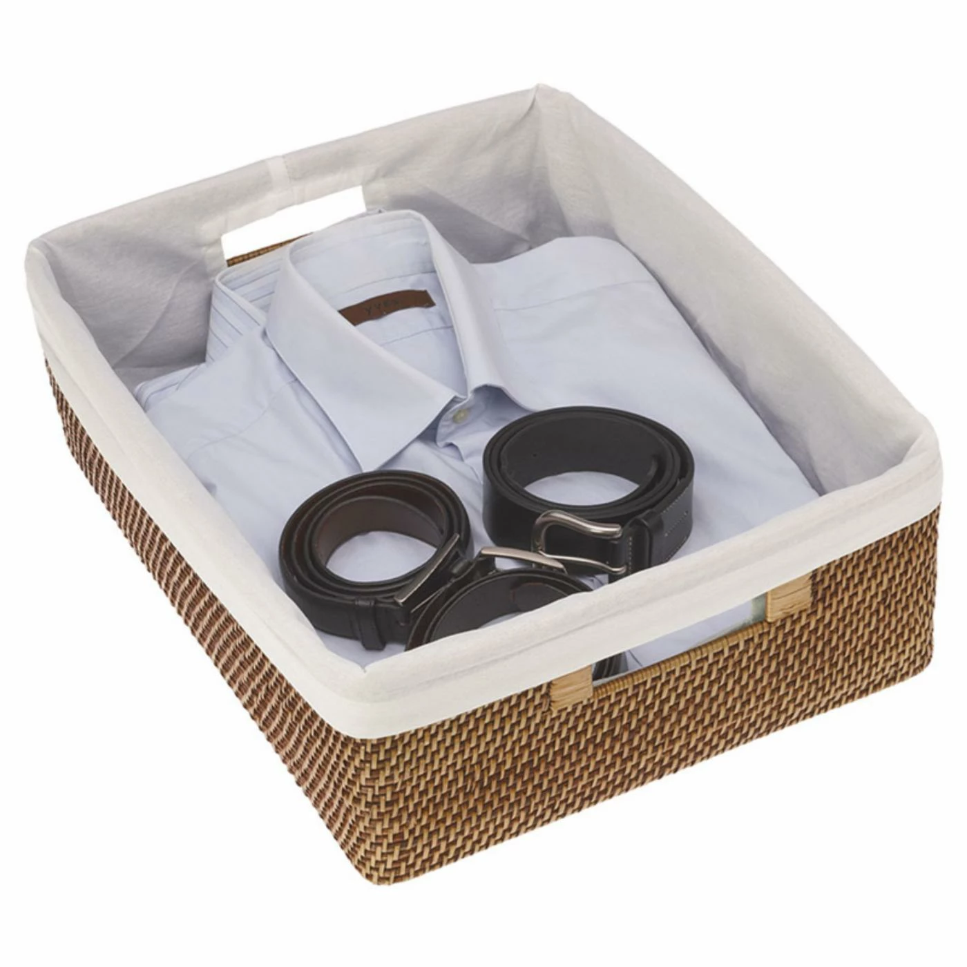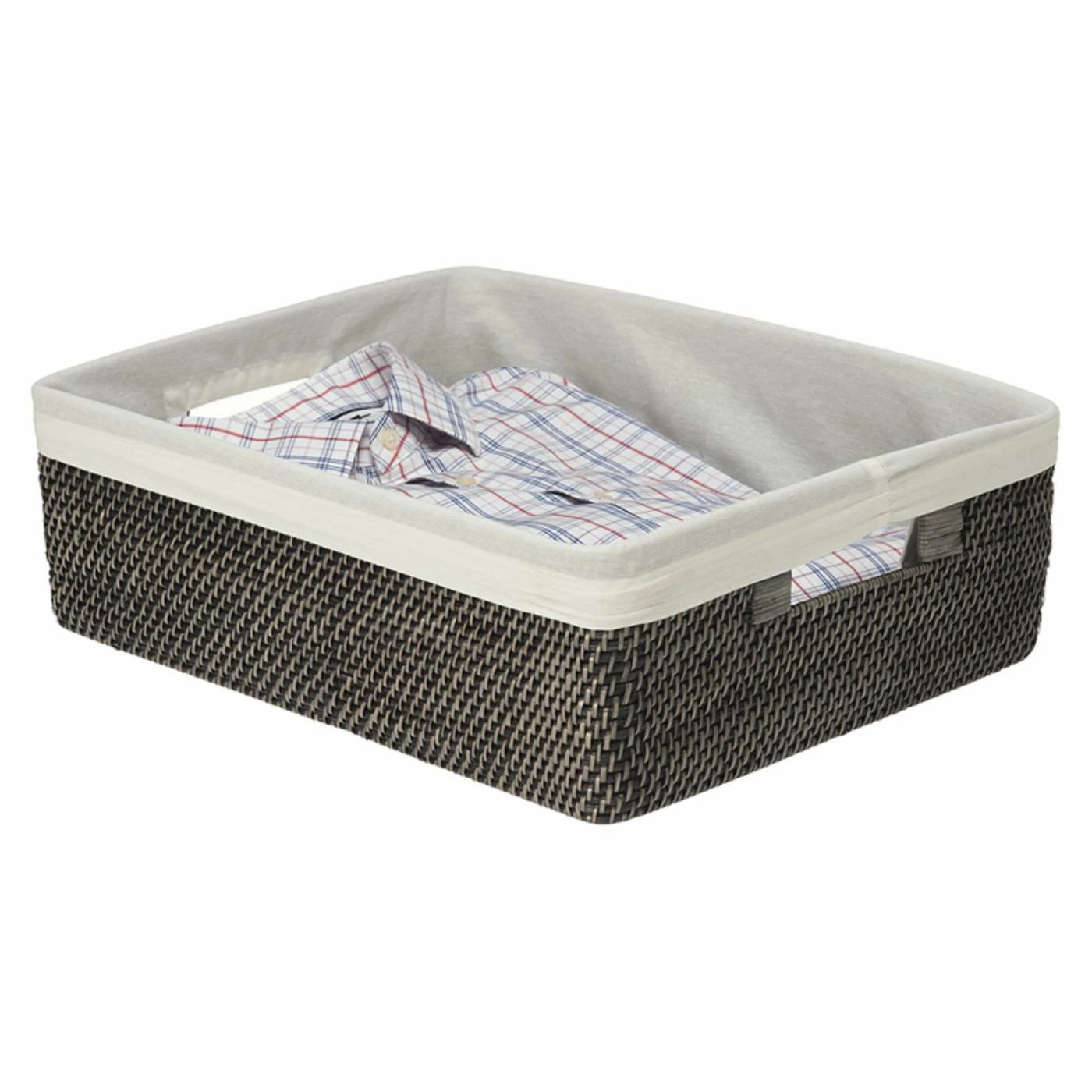A removable, machine-washable canvas liner means you can use the KOUBOO Laguna Handwoven Rattan Shelf Basket with Liner to store just about anything. Its rectangular shape, flat bottom, and cut-out handles add even more versatility to this storage basket. Customize the look by choosing from available color options.
