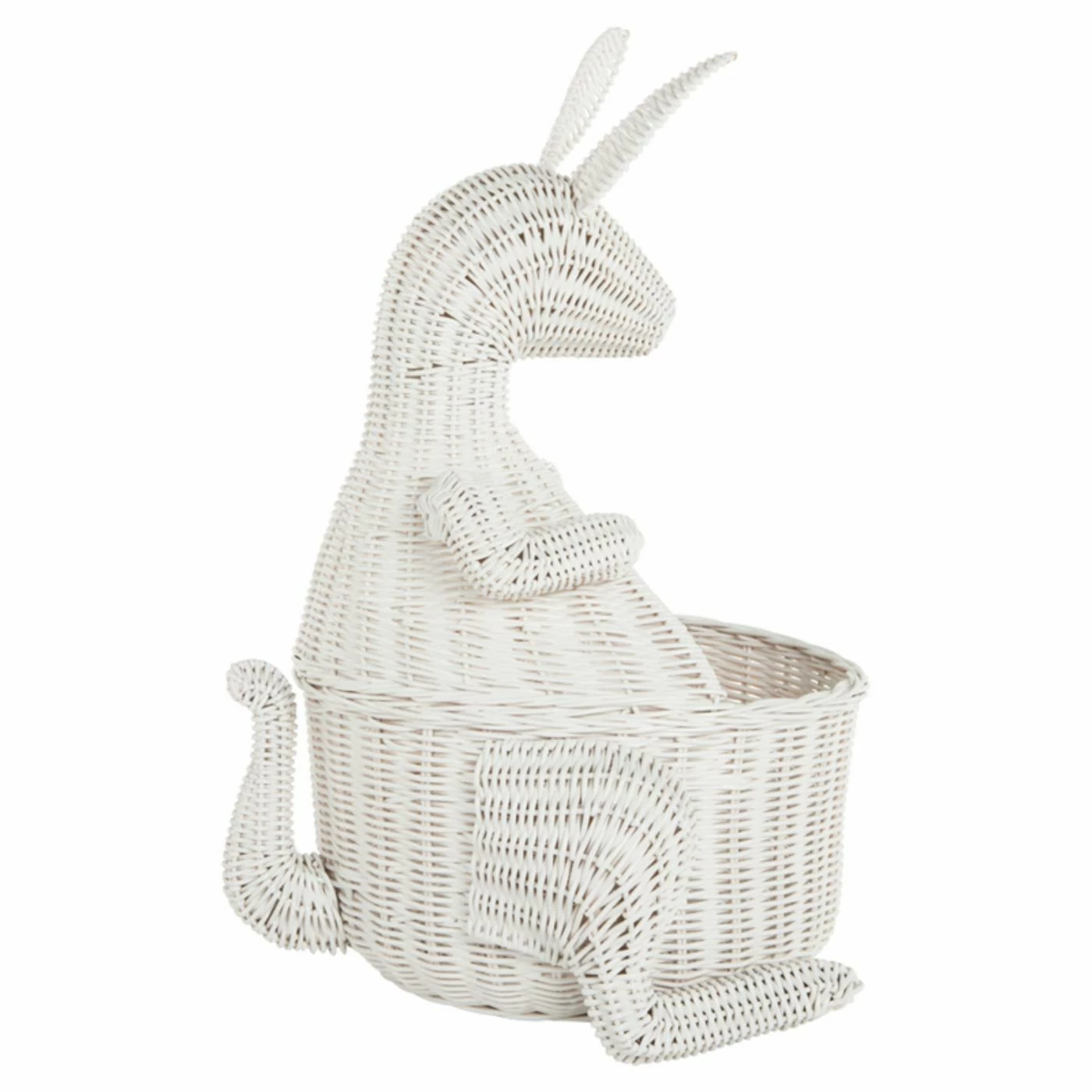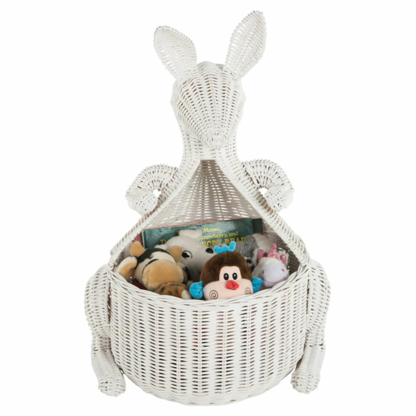 Instead of baby room, the KOUBOO Wicker Kangaroo Storage Basket provides a home for plush toys or clothes. This adorable kangaroo-shaped basket has a generous open design and fresh white finish that matches any bedroom dΓ©cor. It’s as endearing as it is practical.