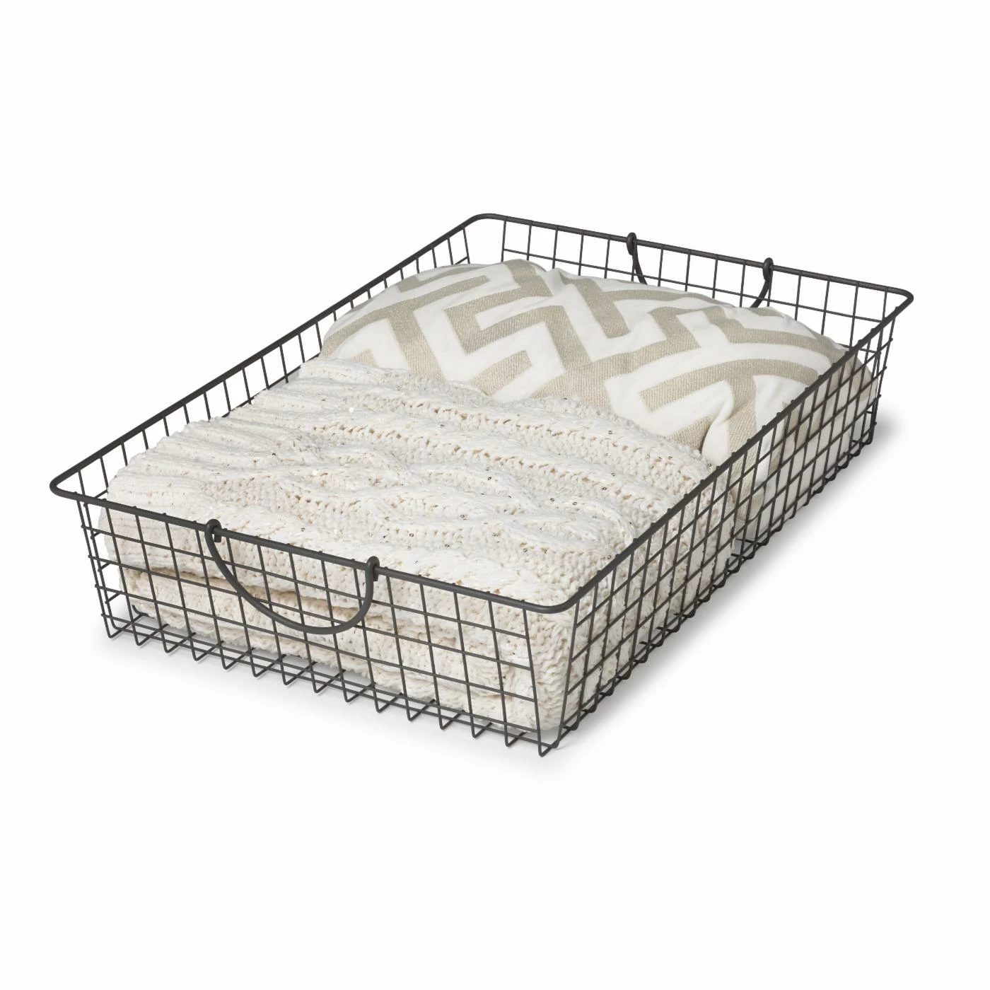 Get organized with the Spectrum Diversified Designs Stowaway Basket. This sturdy steel basket is spacious enough to store blankets, pillows, and clothes. Handles make it portable, and an open design allows you to always know what’s inside.