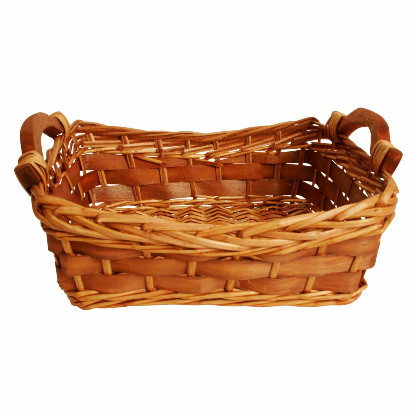 Contain little trinkets or thoughtful gifts with the Wald Import 12 in. Carved Willow Basket. This light brown basket features a curved detail in the front and back to help reveal the items you place inside. Handles on the end make it easy to carry.