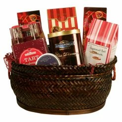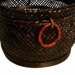Create a luxurious and custom gift basket for your friends or family with the help of the Wald Import Oval Bamboo Herringbone Weave Basket. This woven basket features a rich brown finish with gold trim details for a glamorous finishing touch.