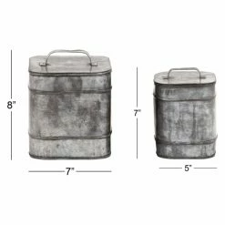 Finish off your farmhouse chic dΓ©cor with the DecMode Square Lidded Metal Decorative Box – Set of 2. Ready for display in the kitchen or living room, these small and large iron boxes have a rugged timeworn look with their distressed silver finish. Lift-off lids with hammered top handles add to the illusion that the boxes are antiques.