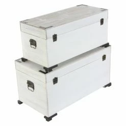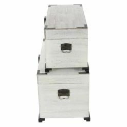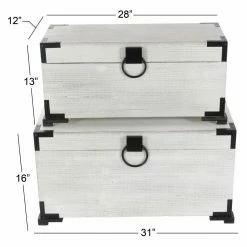 Add a bit of country charm to your home with the whitewashed finish and black iron details of the DecMode Wooden Trunks – Set of 2. Each of these trunks provides extra storage space for keeping extra items neatly out of sight. The sturdy stops keep the lids open for easy hands-free access.