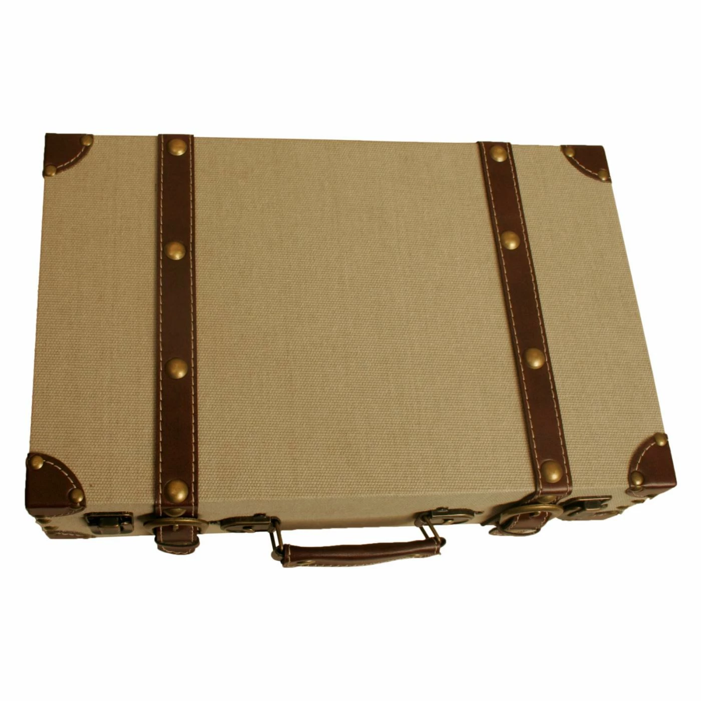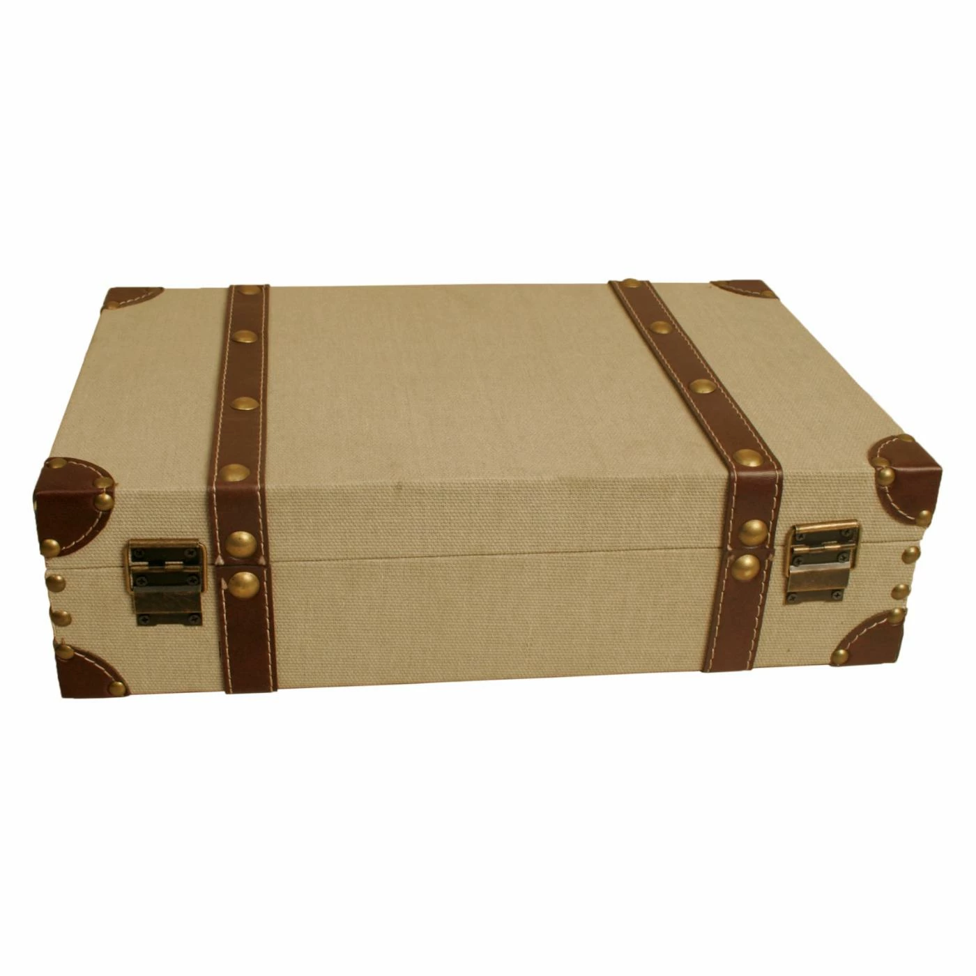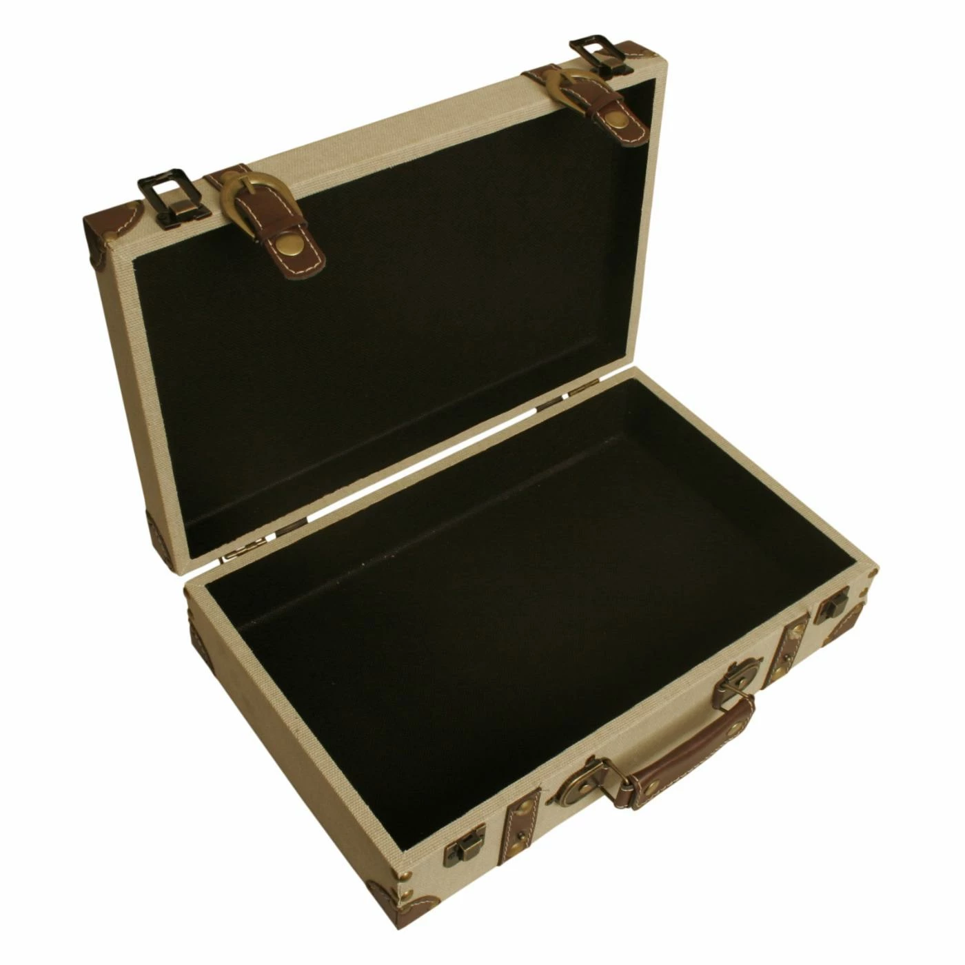 Inject a dose of vintage appeal to your space with the Wald Import Canvas Decorative Suitcase. This decorative case boasts a canvas exterior with leather-like accents. Open it to reveal a spacious compartment to store your favorite keepsakes.