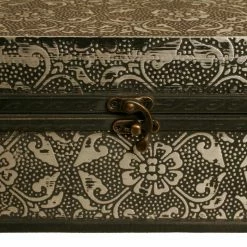 The Wald Import Wood Decorative Box can be used for decorative display in your home. Crafted from metal and wood, it boasts a silver and brown finish with an eye-catching embossed aluminum overlay.