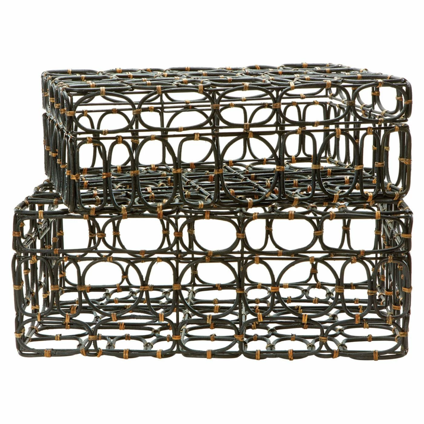 Display your ELK Lighting Rectangular Wicker Box – Set of 2 just as it is or filled with something fluffy. These hand-formed baskets of natural wicker boast a black finish. Links are joined with honey-colored wicker for contrast.