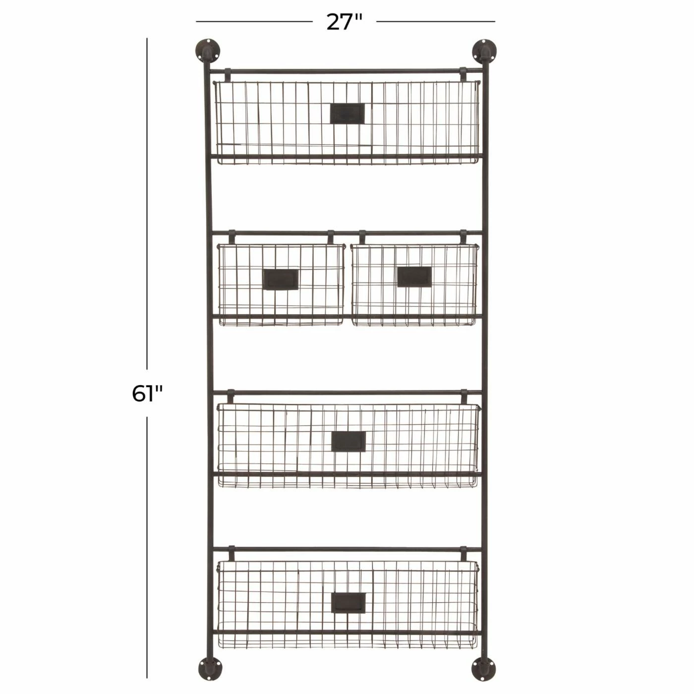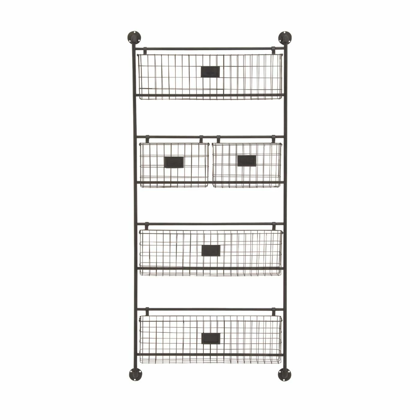 The DecMode Metal Wall Basket are perfect for your office as well as any room in the home. The four-tiered rack is made from gorgeous black iron, and various depths give you ample room to store items securely. Black iron labels attach to the front baskets so you can easily mark the contents inside for even more organization.